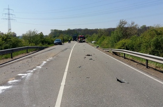 Am 21.04.2017 ereignete sich um 12:36 Uhr ein Verkehrsunfall auf der L 540 zwischen Wörth und Hagenbach. Der Fahrer eines PKW kollidierte auf gerader Strecke mit einem entgegenkommenden LKW. Die genaue Unfallursache ist noch unbekannt. Bis zur Bergung der beiden Fahrzeuge ist die L540 und die BAB 65 Anschlussstelle Hagenbach voll gesperrt. Verletzte wurde niemand. Bitte beachten Sie die Verkehrshinweise.
