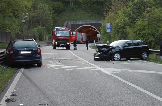 Auf die Gegenfahrspur gekommen und mit zwei entgegenkommenden Fahrzeugen kollidiert ist ein 33-jähriger Pkw-Fahrer zur genannten Zeit auf der B10 zwischen dem Kostenfels- und dem Staufertunnel. Hierbei zog sich der 33-jährige Pkw-Fahrer aus dem Raum München schwere Verletzungen zu und musste mit dem Rettungshubschrauber in eine Klinik nach Ludwigshafen verbracht werden. Nach derzeitigem Stand der Ermittlungen war der Pkw-Fahrer von Pirmasens kommend in Fahrtrichtung Landau unterwegs. Hierbei kam er aus bislang unbekannter Ursache auf die Gegenfahrbahn. Der entgegenkommende 27-jährige Pkw-Fahrer aus dem Raum Landau konnte noch nach rechts ausweichen, wurde jedoch im Heckbereich seines Pkw's touchiert, dass sich sein Pkw drehte und auf der Gegenfahrspur zum Stillstand kam. Die ihm nachfolgende 56-jährige Pkw-Fahrerin aus dem Raum Reilingen konnte nicht mehr rechtszeitig ausweichen und kollidierte frontal mit dem Pkw. Durch den Zusammenstoß zog sich die Pkw-Fahrerin leichte Verletzungen zu und musste in einem Landauer Krankhaus behandelt werden. Es entstand ein Gesamtschaden von circa 70.000 Euro. Die B10 musste in beiden Richtungen für mehrere Stunden vollgesperrt und eine örtliche Umleitung eingerichtet werden. Nach Beendigung der Räumungsarbeiten konnte die B10 um 23:30 Uhr wieder für den Verkehr freigegeben werden. Zur Klärung des Unfallherganges wurde ein Gutachter an die Unfallstelle entsandt.