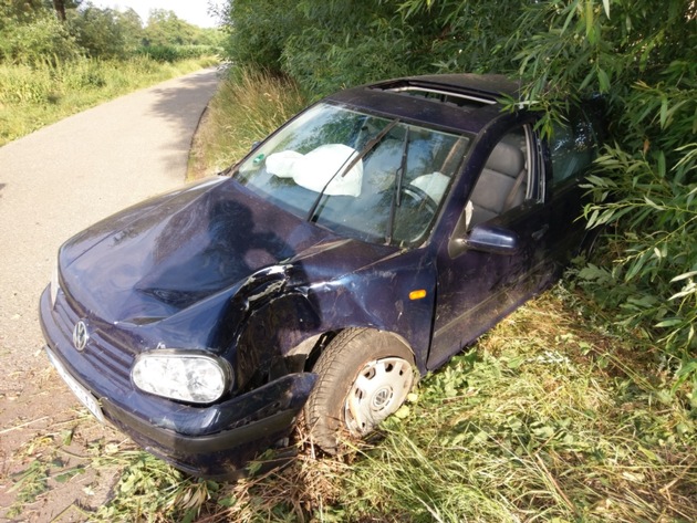 Am 24.06.17, gg. 07.00 Uhr, befuhr der 22 Jahre alte Fahrer eines PKW, VW Golf, die K25 in Fahrtrichtung Oberotterbach. Aufgrund nicht angepasster Geschwindigkeit und Trunkenheit verließ er hierbei die Fahrbahn und kam auf den Grünstreifen. Beim zurück Fahren übersteuerte er, kam ins Schleudern und prallte seitlich gg. einen Baum. Der Fahrer wurde hierbei verletzt und musste ins Krankenhaus gebracht werden. Sein PKW wurde mit Totalschaden - ca. 4000.-EUR - geborgen. Ein Strafverfahren wurde eingeleitet, eine Blutprobe entnommen und sein Führerschein sichergestellt.