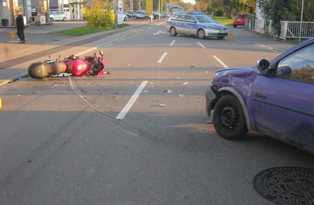 Kandel; Am 15.10.2017 befuhr um 17:23 Uhr ein PKW Fahrer die Lauterburger Straße in Richtung Wörth. Der 58-jährige Fahrer wollte nach links auf das Gelände einer Tankstelle abbiegen. Beim Abbiegevorgang kam es zu einer Kollision mit einem zu diesem Zeitpunkt gerade von hinten überholenden Kradfahrer. Durch den Sturz wurden der 23-jährige Kradfahrer und seine 22-jährige Sozia zum Teil schwer verletzt und musste stationär behandelt werden. Zeugen, die Angaben zu dem Verkehrsunfall machen können, sollen sich bitte mit der Polizeiinspektion Wörth unter 07271-92210 oder unter piwoerth@polizei.rlp.de in Verbindung setzen.