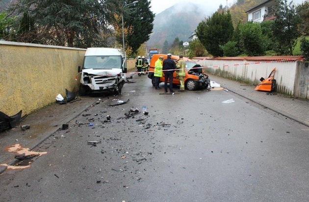 Ein aus der Südpfalz kommender 55-jähriger Mann befuhr mit seinem PKW die L 505 aus Richtung Albersweiler kommend in Richtung Eußerthal. Bereits am Ortseingang von Eußerthal kam es zu einem Auffahrunfall durch den PKW-Fahrer mit einem vorausfahrenden Fahrzeug. Nach dem Zusammenstoß fuhr der 55-jährige laut Zeugenaussage weiter in Richtung Ortsmitte. Hierbei soll er sein Fahrzeug stark beschleunigt haben, bevor er nach ca. 500 Meter nach links frontal in einen geparkten Transporter krachte. Durch die Wucht des Aufpralls wurde der geparkte Transporter ca. 20 Meter nach hinten geschoben. Der Unfallverursacher musste durch die FFW aus seinem Fahrzeugwrack befreit werden und erlag noch vor Ort seinen schweren Verletzungen. Die Unfallursache ist noch völlig unklar. Beim ersten Unfall am Ortseingang entstand ein Schaden von ca. 3000 Euro. Personen kamen hierbei nicht zu Schaden. Beim darauffolgenden Frontalzusammenstoß mit dem geparkten Transporter entstand an beiden Fahrzeugen Totalschaden. Schadenshöhe hier ca. 13000 Euro. Zur Klärung des Unfallherganges wurde ein Sachverständiger eingeschaltet. Die Fahrbahn wurde zwecks Unfallaufnahme für den Durchgangsverkehr gesperrt. Hinweise die zur Aufklärung des Unfallgeschehens beitragen bitte an die Polizei in Annweiler, Tel. 06346-9646 0.
