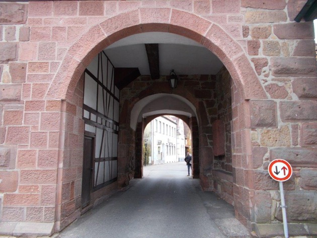 17. November 2017, 18.20 Uhr Der Wunsch des Billigheimer Bürgermeisters erfüllte sich bei der offiziellen Übergabe des Rankgerüsts vor dem Oberen Tor am Freitagmittag nicht. Nur sechs Stunden später fuhr eine Zugmaschine unter der Höhenbegrenzung durch, die zum Schutz des historischen Tores aufgebaut war und blieb leicht mit seinem Windabweiser an dem Tor hängen (siehe Bild). Es entstanden minimale Kratzspuren am Tor und der Verursacher fuhr weiter. Glücklicherweise konnte das Kennzeichen von einem Zeugen abgelesen werden, so dass die Polizei bei der Halterfirma in Mannheim die Ermittlungen nach dem Fahrer aufnehmen konnte.