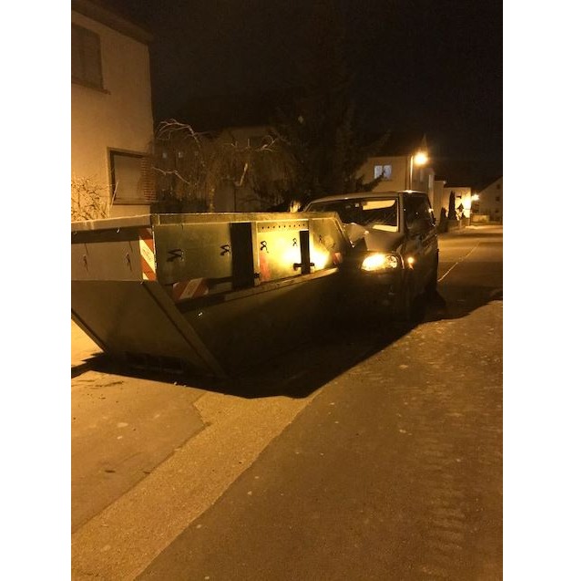 22. Februar 2018, 20.20 Uhr Eine kurze Unachtsamkeit kam einem 30-jährigen Herxheimer am Donnerstagabend teuer zu stehen. In der Kesslerstraße übersah der Fahrer eines VW-Transporters einen mit Bauschutt am Straßenrand abgestellten Baucontainer und prallte frontal auf das Hindernis. Am Fahrzeug wurde die komplette Motorhaube eingedrückt (siehe Bild). Am Fahrzeug entstand ein Totalschaden in Höhe von mindestens 3.000 Euro. Bei dem Anstoß verletzte sich der Fahrer leicht an der Hand.