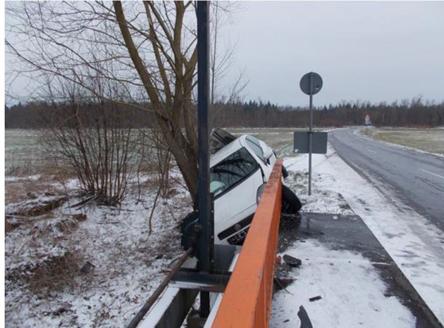 18. März 2018, 11.45 Uhr Zu den bisher gemeldeten Glatteisunfällen am Sonntagmorgen gesellten sich bis zur Mittagszeit noch zwei weitere Unfälle dazu, die auf die winterlichen Straßenverhältnisse zurückzuführen waren. Während es bei dem Unfall in Landau in der Hagenauer Straße nur Blechschaden an einem geparkten Auto gab, ging der Unfall auf der K 40 bei Offenbach nicht so glimpflich aus. Eine 20-jährige Frau fuhr in ihrem Fiat Punto auf der Landstraße. Kurz vor dem Ortsteil Neumühle kam sie auf schneebedeckter Straße ins Schleudern und anschließend von der Straße ab. Ihr Auto kam nach einigen Metern an einem Baum kurz vor einer Brücke zum Stehen (siehe Bild). Die Fahrerin wurde dabei leicht verletzt. Sie kam zur weiteren medizinischen Versorgung ins Krankenhaus. Am Fiat entstand ein Totalschaden. Das Auto war nicht mehr fahrbereit und musste abgeschleppt werden.