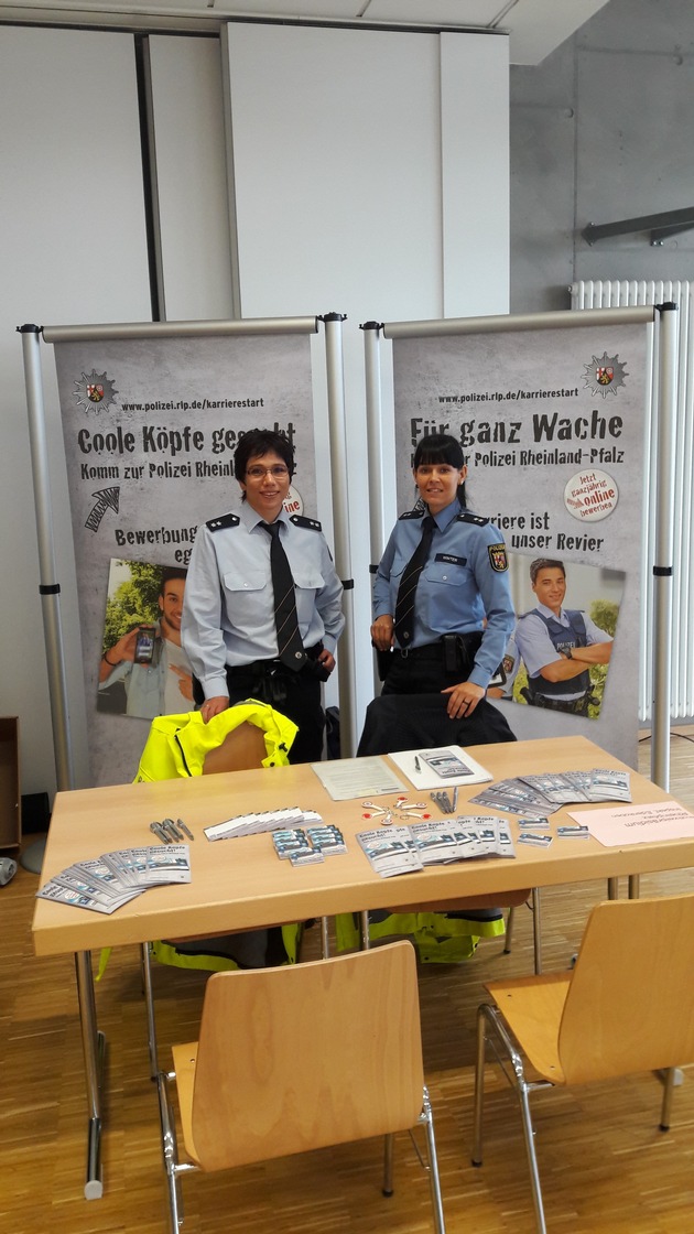 Die PI Edenkoben nahm am Donnerstag, 17.05., von 09-13 Uhr, mit einem Informationsstand und zwei Beamtinnen an der RABS in Maikammer teil. Teilnehmer waren ca. 800 Schülerinnen und Schüler und etwa 50 Betriebe und Institutionen wie Universitäten und Hochschulen. Ziel der Veranstaltung war es, den beteiligten Schülerinnen und Schülern die Möglichkeit zu geben, breit gefächerte Kontakte zu Betrieben aus der Region, zu schulischen Anbietern und Studieneinrichtungen aufzunehmen. Es herrschte reger Andrang auf der Messe und das Informationsangebot der Polizeiinspektion Edenkoben / Polizeipräsidium Rheinpfalz wurde sehr gut angenommen. Alle Fragen rund um den Polizeiberuf konnten gestellt und der aktuelle Ausbildungsweg zum Polizeikommissar anschaulich dargestellt werden.