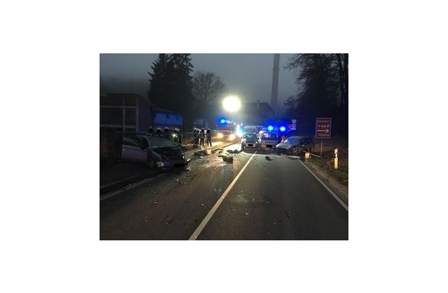 Heute Morgen gegen 07.19 Uhr geriet eine in Richtung Lambrecht fahrende 35jährige Autofahrerin aus bislang unbekannter Ursache auf der B39 zwischen Neustadt und Lambrecht, Höhe der ehemaligen Papierfabrik Knöckel und Schmidt, mit ihrem PKW auf die Gegenfahrbahn und kollidierte frontal mit einem mit einer Person besetzten Kraftfahrzeug. Die Unfallverursacherin wurde durch die Rettungskräfte geborgen und, wie auch die Insassin des zweiten PKW, schwer verletzt. Zwei weitere, jeweils mit einer Person besetzten Kraftfahrzeuge, touchierten leicht das unfallverursachende Fahrzeug, wurden jedoch nur leicht bzw. nicht verletzt und an deren Fahrzeuge entstand nur geringer Sachschaden. Drei Personen mussten in die umliegenden Krankenhäuser gebracht werden, wobei die Unfallverursacherin stationär aufgenommen werden musste. Die Höhe des Sachschadens wird auf ca. 15.000.- Euro geschätzt. Neben den eingesetzten Polizeibeamten waren ca. 20 Feuerwehrleute, fünf RTW und ein NAW im Einsatz. Die B39 musste wegen Bergungs- und Reinigungsarbeiten bis 09.05 Uhr voll gesperrt werden.
