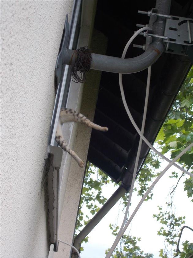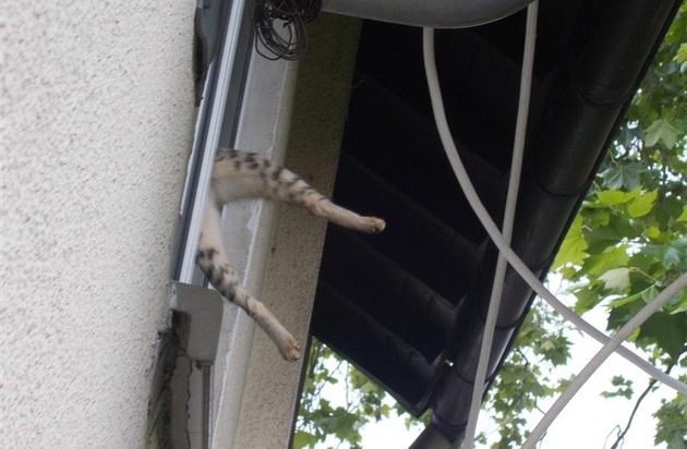 Gestern, 03.07.2016, gegen 16.00 Uhr, klemmte sich eine neun Monate alte Katze in einem gekippten Fenster im 3. OG eines Mehrfamilienhauses in der Ursinusstraße derart ein, dass sie sich alleine nicht mehr aus der misslichen Lage befreien konnte. Die Herrin der Katze war nicht in ihrer Wohnung und auch telefonisch nicht zu erreichen, so dass die Wohnungstür durch eine Fachfirma geöffnet werden musste, damit die eingesetzten Polizisten die Katze retten und in tierärztliche Behandlung bringen konnten. Glücklicherweise erlitt das Kätzchen keine schweren Verletzungen und braucht jetzt einfach nur Ruhe.