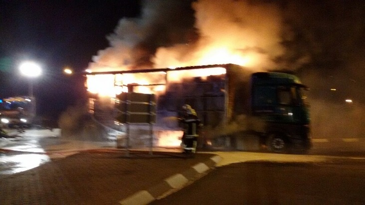 POL-PDNW: Vollbrand eines slowakischen Sattelzugs in Grünstadt