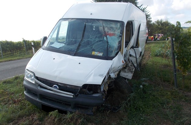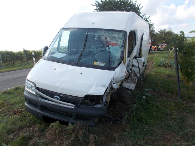 Am 11.10.2016, gegen 13:40 Uhr stießen zwei Fahrzeuge im Begegnungsverkehr zusammen - die jeweiligen Insassen erlitten glücklicherweise keine schwereren Verletzungen. Nach den bisherigen Ermittlungen ergibt sich folgender Hergang: Ein Transporter (Paketfahrer) besetzt mit 2 Personen (31 und 28 Jahre) befuhr die K 27 in Richtung Obrigheim. Ein 80-Jähriger aus Obrigheim befuhr mit seinem PKW die gerade Strecke in entgegen gesetzter Richtung. Im Begegnungsverkehr stießen beide Fahrzeuge mit ihren jeweiligen linken Kotflügeln ungebremst ineinander. Durch die Wucht des Aufpralles wurden beide Fahrzeuge herum geschleudert. Der Opel kam nach rechts von der Fahrbahn ab und im Feld zum Stehen. Der Transporter-Fahrer reagierte geistesgegenwärtig, wich einem Baum aus und kam dann nach links von der Fahrbahn ab. Zunächst hieß es, der PKW-Fahrer sei im PKW eingeklemmt, was sich aber nicht bestätigte. Ebenso scheinen seine Verletzungen nicht so gravierend zu sein, wie ursprünglich vermutet. Er war ansprechbar und bei vollem Bewusstsein. Der 80-Jährige wurde mit einem Rettungshubschrauber in eine Klinik geflogen - er hatte äußerlich keine Verletzungen. Es besteht Verdacht auf HWS. Der Transporter-Fahrer erlitt ebenfalls ein HWS und kam in ein Krankenhaus in der Nähe. Sein Beifahrer klagt über Schmerzen im Arm. An den Fahrzeugen entstand Sachschaden in Höhe von insgesamt ca. 13.000.- Euro - beide Fahrzeuge dürften Totalschäden haben. Beiden Fahrzeugführern dürfte ein Vorwurf zur Verursachung des Unfalles zu machen sein. Da es sich um eine relativ schmale Fahrbahn handelt gilt einerseits das Rechtsfahrgebot und zudem die Regel "Fahren auf Sicht".
