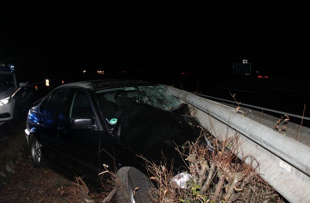 "Glück im Unglück" hatte am Samstag-Abend ein bulgarischer PKW-Fahrer mit Wohnsitz im Kreis Bad Dürkheim. Am Autobahnkreuz Ludwigshafen wollte der 30-Jährige von der A650 auf die A61 Richtung Koblenz wechseln und geriet im Kurvenbereich aufgrund überhöhter Geschwindigkeit ins Schleudern. Der PKW bohrte sich dann mit der Fahrzeugfront unter die Schutzplanken. Beim Eintreffen der Autobahnpolizei stellte diese zunächst nur den verlassenen PKW fest. Kurze Zeit später konnte aber auch in Nähe zur Unfallstelle der zum Glück unverletzte Fahrer festgestellt werden. Der Mann, der sich unerlaubt vom Unfallort entfernt hatte, stand erheblich unter Alkoholeinwirkung. Ein durchgeführter Alkoholtest ergab einen Wert von 1,57 Promille. Dem Fahrer droht nun eine Geldstrafe sowie ein längeres Fahrverbot. Der Gesamtschaden beläuft sich auf ca. 15.000 EUR.