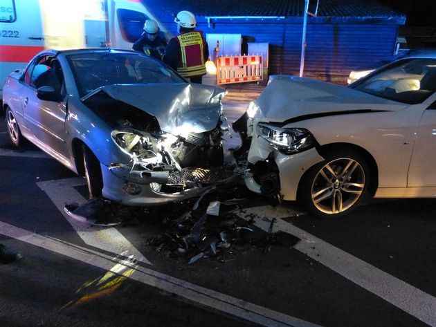 Am Samstag (18.02.2017), gg. 18.10 h, ereignete sich auf der L 499 (Ortslage Sattelmühle/Frankeneck) an der Einmündung zur K 23 (Esthal) ein schwerer Verkehrsunfall bei welchem insgesamt sechs Personen verletzt wurden. Ein 21jähriger Ludwigshafener befuhr mit seinem BMW, welcher mit vier Personen besetzt war, die Straße aus Esthal kommend und war in der Absicht nach links auf die L 499 in Richtung Frankeneck abzubiegen. In dem Moment kam ein 20jähriger Esthaler mit seinem mit zwei Personen besetzten Peugeot aus Richtung Frankeneck. Im Einmündungsbereich kam es zur Kollision der beiden Fahrzeuge. Hierbei wurden die Insassen des BMW, sowie der Fahrer des Peugeot leicht verletzt und wurden zur ambulanten Behandlung in umliegende Krankenhäuser verbracht. Der nicht angeschnallte Beifahrer des Peugeot musste zur Abklärung seiner Verletzungen in die BGU-Klinik Ludwigshafen verbracht werden. Neben der Polizei Neustadt waren eine Vielzahl von Einsatzkräften von Feuerwehr und Rettungsdienst im Einsatz. Der Einmündungsbereich musste wegen der Aufräum- und Reinigungsarbeiten für ca. eine Stunde voll gesperrt werden.