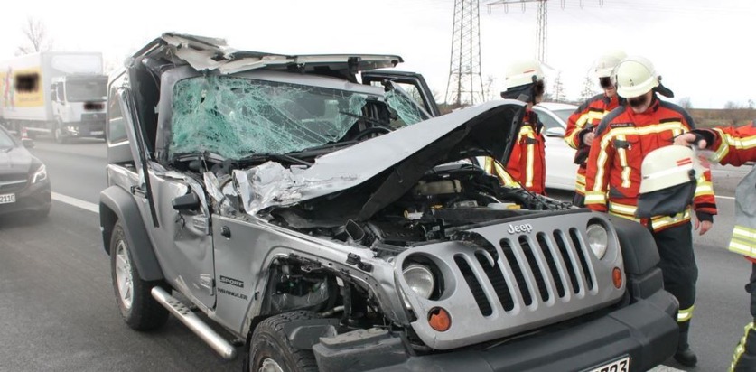 "Glück im Unglück" hatte am Mittwoch-Morgen ein Autofahrer aus Heidelberg. Am 01.03.2017 gegen 10:30h kam es auf der BAB 61 zu einem Verkehrsunfall mit erheblichem Sachschaden. Kurz nach der Ausfahrt der Tank-und Rastanlage Dannstadt-Ost (in Fahrtrichtung Koblenz) wechselte der 41-Jährige aus Heidelberg mit seinem Jeep Geländewagen von der linken auf die rechte Fahrspur. Dabei übersah er den neben sich befindlichen Fahrer eines Sattelzugs und kollidierte beim Einscheren nach rechts mit dem Auflieger des Fahrzeugs. Der PKW bohrte sich unter die Radaufhängung des Sattelzugs und wurde über mehrere Meter mitgeschleift, Trümmerteile lagen über mehrere hundert Meter verteilt auf der Autobahn. Der Fahrer des PKW wurde aufgrund der Wucht des Aufpralls zur vorsorglichen Untersuchung in die BG Unfallklinik verbracht. Wie durch ein Wunder blieb er jedoch völlig unverletzt und konnte nach kurzer Untersuchung das Krankenhaus wieder verlassen. Auch der Fahrer des Sattelzugs kam lediglich mit dem Schrecken davon. Die Richtungsfahrbahn Koblenz musste für ca. 1 1/2 Stunden halbseitig gesperrt werden, weshalb es zu Verkehrsbeeinträchtigungen kam. Der Gesamtschaden beläuft sich auf ca. 50.000 Euro. Neben der Autobahnpolizei waren die Autobahnmeisterei, die Luftrettung (Christoph), ein RTW sowie die Feuerwehr Schifferstadt im Einsatz.