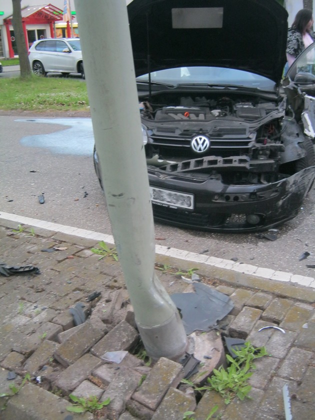 Am Dienstag, den 18.04.2017 gegen 19:40 Uhr befuhr eine 18-Jahre junge PKW Fahrerin die Kreisstraße 1 aus Neustadt kommend in Richtung Haßloch. In Höhe eines Möbelhauses bog die junge Fahrerin nach rechts in die Straße am Altenschemel. Nach den derzeitigen Ermittlungen kam der PKW infolge zu hoher Geschwindigkeit von der Fahrbahn ab und prallte frontal gegen ein Verkehrszeichen und einen Laternenmast. Die Fahrerin verletzte sich bei dem Unfall leicht und musste in ärztliche Behandlung. Am PKW entstand ein erheblicher Sachschaden der durch die Polizei auf ca. 10000 Euro geschätzt wird. Durch den Aufprall löste sich das Fundament des Laternenmastes, so dass dieser in Schieflage geriet. Die freiwillige Feuerwehr sicherte den Laternenmast.