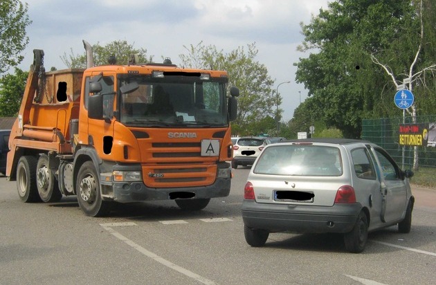 POL-PDNW: Neustadt - Polizei, Feuerwehr und Notarzt im Einsatz - Renault Twingo verliert gegen LKW