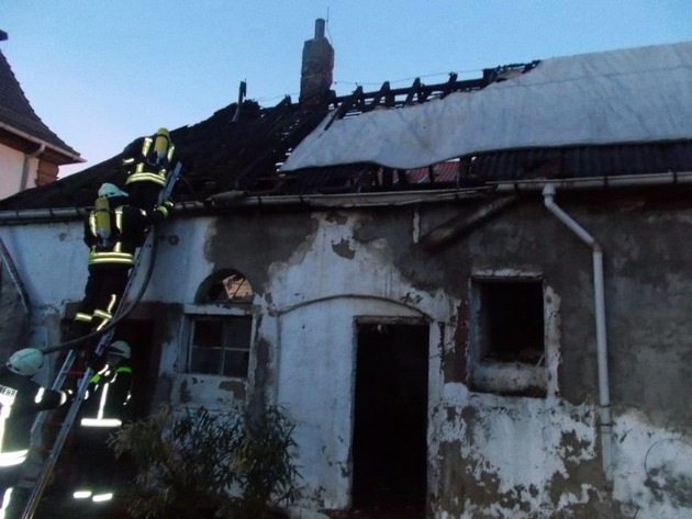 Gestern gegen 20.30 Uhr brannte eine Scheune in der Kirchgasse in Dirmstein. Es brannte der Dachstuhl eines alten leerstehenden Stallgebäudes, das direkt an die Fahrbahn der Kirchgasse angrenzt, teilweise aus. Das Stallgebäude mit dem ehemaligen landwirtschaftlichen Betrieb befindet sich im Ortskern von Dirmstein. Hinweise auf die Ursache des Brandes liegen im Moment nicht vor. Nach Auskunft des Eigentümers war er letztmals vor 4 - 5 Tagen in dem Anwesen. Hinweise auf Personen, die sich unberechtigt in dem Anwesen aufhielten liegen nicht vor. Eine Gefahr, dass das Feuer auf die angrenzenden Gebäude übergreift bestand aufgrund der schnellen Löscharbeiten der Feuerwehren nicht. Der Sachschaden wird derzeit auf 10.000,- Euro geschätzt. Die Ermittlungen der Kripo Neustadt dauern an. Sachdienliche Hinweise bitte an die Polizei Neustadt.