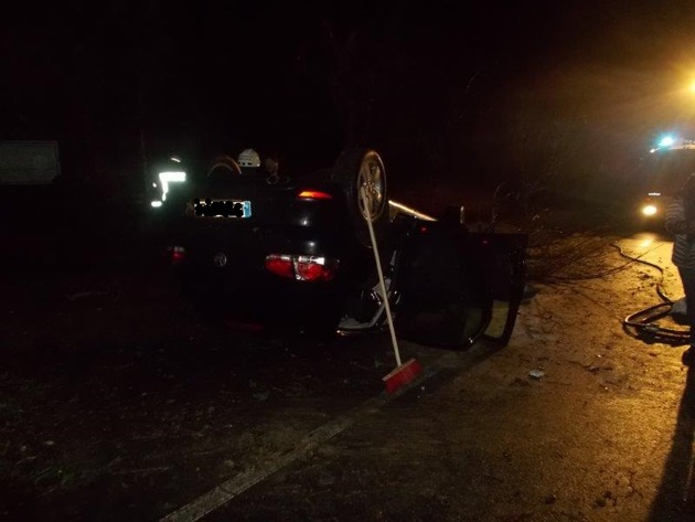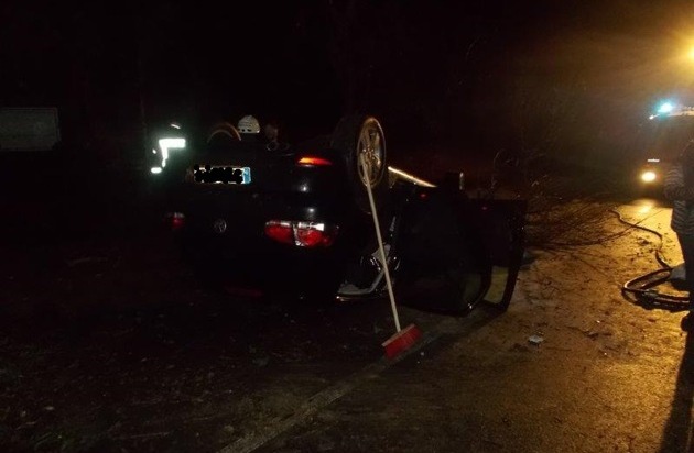 POL-PDNW: Mit Auto überschlagen - Motor fängt Feuer