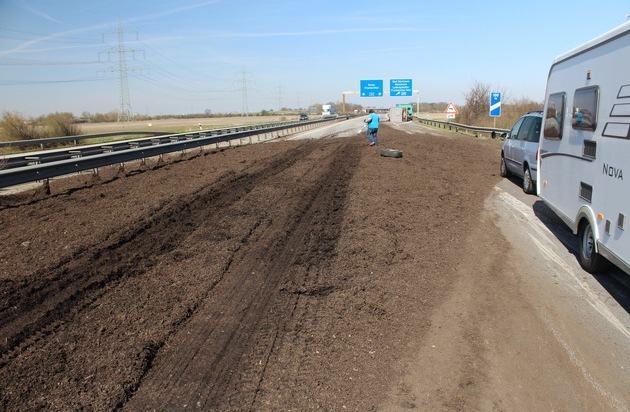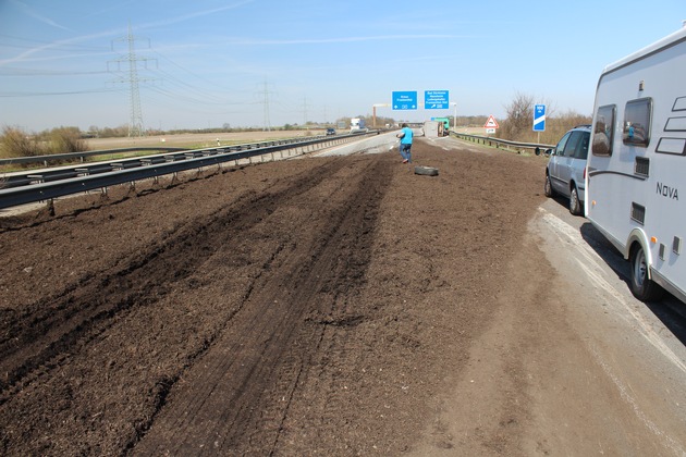 Viel Geduld brauchten gestern Nachmittag Verkehrsteilnehmer die auf der A61 in Richtung Norden unterwegs waren. Kurz vor dem Autobahnkreuz Ludwigshafen war der Anhänger eines LKW umgekippt, nachdem dieser über ein auf der Fahrbahn liegendes Rad gefahren war und sich aufschaukelt hatte. Glücklicherweise kam es bei dem Verkehrsunfall zu keinen weiteren Schäden für andere Verkehrsteilnehmer. Allerdings wurde die Ladung des Anhängers, ca. 17 t Komposterde, über beide Fahrstreifen der Fahrbahn verstreut, wodurch diese blockiert war und es kein Durchkommen gab. Die Aufräum- und Reinigungsarbeiten sowie die Bergung des Anhängers mittels Kran dauerten bis in die frühen Abendstunden. Die Richtungsfahrbahn Koblenz blieb dadurch etwa für fünf Stunden voll gesperrt. Es gab zeitweise bis zu 10 km Rückstau. Zwar wurde eine Umleitung ab dem Autobahnkreuz Mutterstadt bzw. ab dem Kreuz Speyer eingerichtet, doch viele Verkehrsteilnehmer nahmen diese leider nicht an und blieben lieber im Stau stehen. Auf großes Unverständnis bei den Kräften der Autobahnmeisterei stieß das Verhalten einiger Verkehrsteilnehmer, die die Fahrbahnsperrung ignorierten und sogar von der Autobahnmeisterei aufgestellte Leitkegel eigenmächtig entfernten. Plötzlich tauchten sie mit ihren Kraftfahrzeugen vor den Kräften der Autobahnmeisterei auf, die mit den Reinigungsarbeiten beschäftigt waren. Ein solch dreistes und unverschämtes Verhalten ist nicht einmal durch lange Wartezeiten bei Hitze gerechtfertigt und wird konsequent geahndet.