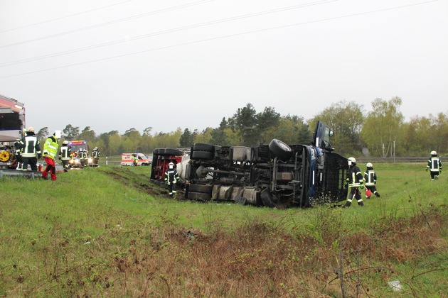 (Speyer) Verkehrsunfall mit umgestürzten Sattelzug Am Freitag, dem 13.04.18, gegen 12.12 Uhr befuhr ein Sattelschlepper mit Tankauflieger die B 9 in Fahrtrichtung Ludwigshafen. Der Sattelschlepper wollte am AK Speyer auf die BAB 61 in Fahrtrichtung Hockenheim auffahren. In Folge nicht angepasster Geschwindigkeit kam der Sattelschlepper von der Fahrbahn ab und kippte um. Hierbei verletzte sich der 28-jährige Fahrer leicht. Der LKW hatte 25 Tonnen flüssige Kreide geladen. Zu einem Flüssigkeitsaustritt kam es nicht. Die Bergungsarbeiten dauern noch bis in die Morgenstunden des 14.04.an. Die Tangente auf die BAB 61 wurde komplett gesperrt. Der entstandene Sachschaden wird auf ca. 50000 Euro geschätzt. Die Feuerwehr der Stadt Speyer war mit 18 Mann im Einsatz. Ebenso der Rettungshubschrauber.