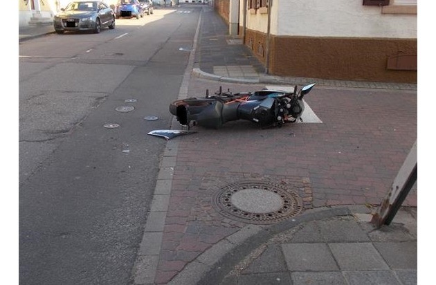 Der 18-jährige KTM-Fahrer befuhr mit seiner Beifahrerin die Weinstraße in Wachenheim/Wstr. aus Bad Dürkheim kommend in Fahrtrichtung Forst, als in Höhe Kreuzung Weinstraße/ Ringstraße von Rechts der wartepflichtige 62-jährige Peugeot-Fahrer auf die Weinstraße auffuhr, um diese zu kreuzen. Der 18-jährige Motorradfahrer kam, trotz eingeleiteter Notbremsung und Ausweichen, nicht mehr rechtzeitig zum Stehen und kollidierte mit dem PKW des 62-Jährigen. Der 18-jährige Motorradfahrer sowie seine 18-jährige Beifahrerin stürzten über die Motorhaube des PKW und kamen auf der gegenüberliegenden Fahrbahnseite zum Liegen. Der 18-jährige Motorradfahrer sowie seine 18-jährige Beifahrerin wurden ins Krankenhaus verbracht und stationär aufgenommen. Der 62-jährige Peugeot-Fahrer blieb unverletzt. Es entstand Sachschaden in einer Höhe von ca. 4500EUR.