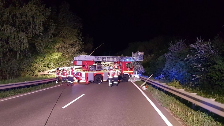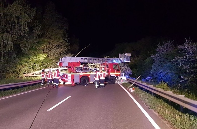Am frühen Morgen des 06.05.2018 wurde um 02:10 Uhr durch einen Verkehrsteilnehmer ein umgestürzter Baum auf der B 271 gemeldet. Dieser befand sich zwischen den Abfahrten Deidesheim und Wachenheim und erstreckte sich über beide Fahrtrichtungen, sodass ein Passieren für Fahrzeuge nicht möglich war. Die verständigte Feuerwehr Deidesheim zersägte den Baum und räumte die Fahrbahn. Während der Bergungsarbeiten war die B 271 zwischen den beiden Abfahrten für ca. 1 Stunde voll gesperrt. Es herrschte zu dieser Zeit nur mäßiger Verkehr. Es kam zu keinem Sach- oder Personenschaden.