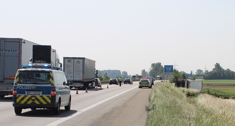 Sattelzug bei Dannstadt-Schaernheim umgestürzt