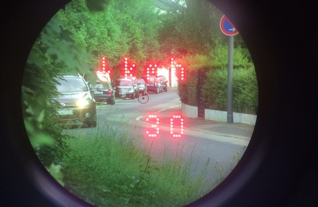 Im Bereich des Sportplatzes in Geinsheim wurde ebenfalls eine Kontrollstelle auf der B 39 eingerichtet. Während der 90-minütigen Kontrolle passierten knapp 90 Fahrzeuge die Kontrollstelle. In der dortigen 70er Zone wurde der Schnellste mit 120 km/h "geblitzt". 6 weitere Fahrzeugführer waren ebenfalls deutlich zu schnell unterwegs und wurden gebührenpflichtig verwarnt.