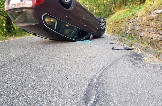 Ein 39-jähriger Bad Dürkheimer befuhr am Montagabend den Luitpoldweg von der Limburg kommend. Aus nicht geklärten Gründen kam das Fahrzeug nach rechts von der Fahrbahn ab, kollidierte mit dem Randstein und der Begrenzungsmauer und überschlug sich. Der Fahrzeugführer wurde leicht verletzt und vorsorglich ins Krankenhaus verbracht. Das auf dem Dach liegende Fahrzeug musste durch eine Spezialfirma geborgen werden.