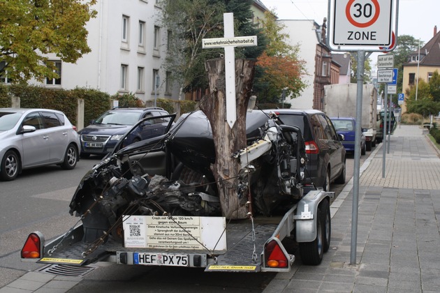 Die Polizei Frankenthal lädt hiermit alle Pressevertreter herzlich dazu ein, am ersten Crash-Kurs teilzunehmen. Seit dem heutigen Mittwoch steht zudem das "Unfall - Denk - Mal PKW" vom Verein zur Verhütung von Verkehrsunfällen vor der Polizeiinspektion Frankenthal. Es zeigt eindrucksvoll die bei deinem Verkehrsunfall wirkenden Kräfte.