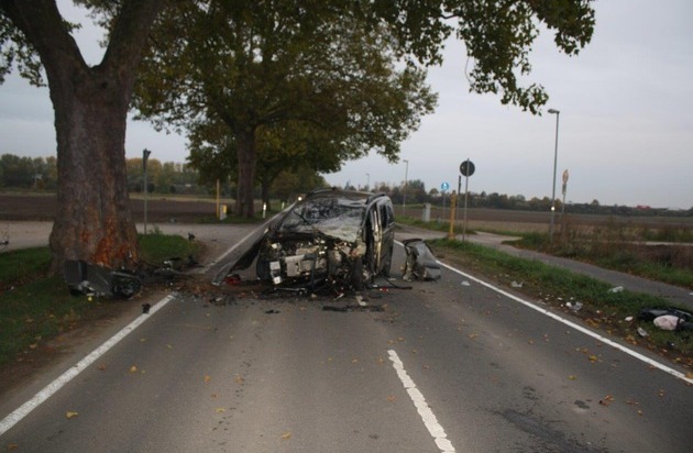 Am 22.10.2015, gegen 07.00 Uhr kam es auf der L 453, zwischen Frankenthal und Heßheim zu einem tödlichen Verkehrsunfall, nachdem ein 62-Jähriger aus Frankenthal mit seinem Pkw der Marke Citroen nach bisherigen Erkenntnissen nach links von der Fahrbahn abkam und gegen einen Baum fuhr. Der Fahrzeugführer konnte zwar vor Ort durch die Feuerwehr schwerverletzt geborgen werden, verstarb jedoch in einem nahe gelegenen Krankenhaus an seinen schweren Verletzungen. Die Unfallstelle musste für ca. zwei Stunden voll gesperrt werden. Der Sachschaden beträgt ca. 13000,-EUR. Die Polizeiinspektion Frankenthal hat die Ermittlungen aufgenommen.