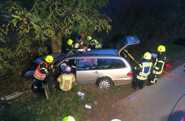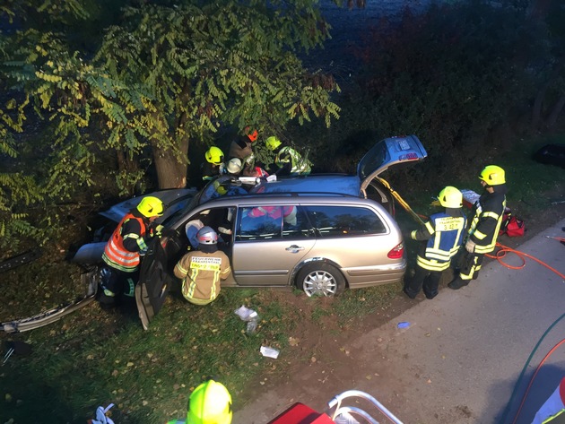 Am späten Samstagnachmittag kam es auf der Landstraße zwischen Frankenthal und Lambsheim zu einem schweren Verkehrsunfall, bei dem zwei Frauen schwerste Verletzungen erlitten. Eine 68-jährige Fahrerin aus Ludwigshafen kam aus bisher noch nicht geklärter Ursache bei voller Fahrt von der Fahrbahn ab und kollidierte frontal mit einem Baum. Dabei wurde die Beifahrerin schwer im Fahrzeug eingeklemmt. Die Feuerwehr Frankenthal konnte beide Frauen aus dem Unfallfahrzeug befreien. Sie wurden in umliegende Krankenhäuser verbracht. Der Gesundheitszustand der Beifahrerin wird durch die Notärzte als sehr kritisch eingeschätzt.