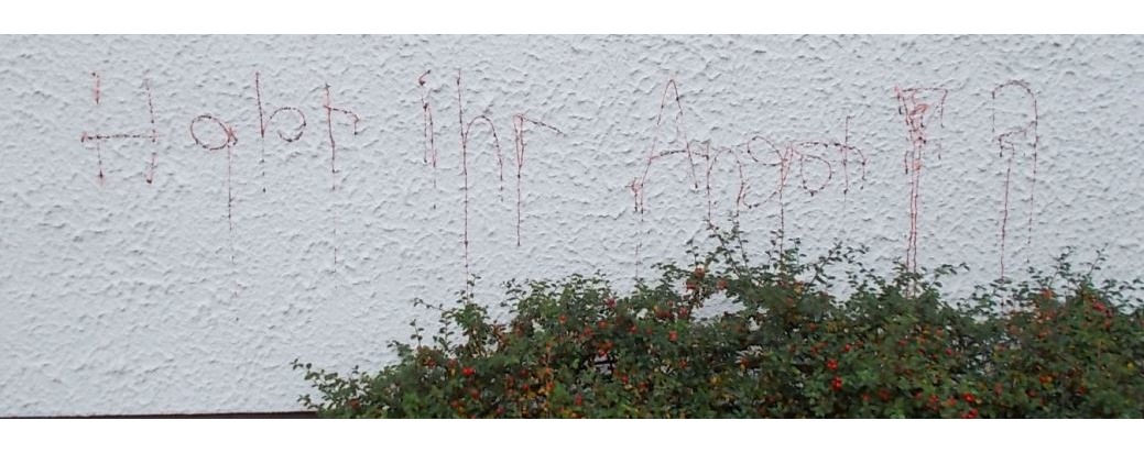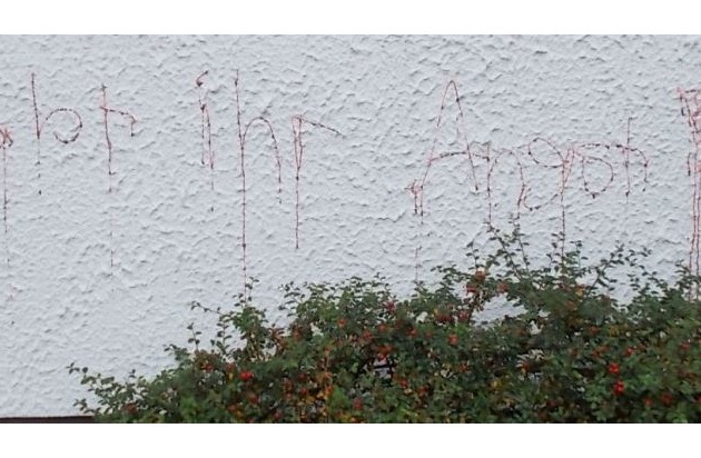 *, den 31.10.2015 20.00 Uhr bis 01.11.2015, 11.00 Uhr* Kinder dürften für Schmierereien im Bereich der Windhorststraße verantwortlich sein. Dort wurden Hauswände mit roter Sprühfarbe und mit Kunstblut aus der Tube beschmiert und beschädigt.