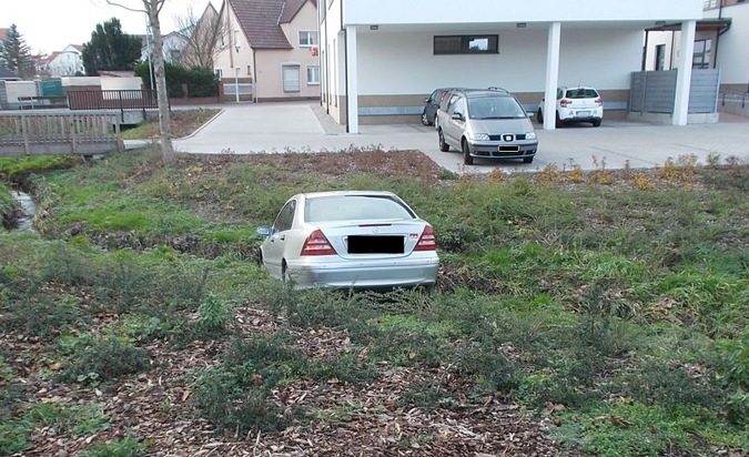 *, den 22.12.2015, 12.45 Uhr* Jäh endete das Ausparken auf dem Parkplatz des Wasgau Marktes. Eine 78- jährige PKW- Fahrerin hatte beim Rangieren das Gaspedal mit dem Bremspedal verwechselt. Das Fahrzeug wurde beschleunigt und fuhr über die Parkplatzbegrenzung hinaus über eine Grünfläche und kam im Hainbach zum Stehen. Die Fahrerin wurde glücklicherweise nicht verletzt, der Sachschaden ist gering, allerdings musste das Fahrzeug geborgen werden. Betriebsstoffe waren nicht ausgetreten, eine Gewässerverunreinigung kann ausgeschlossen werden.