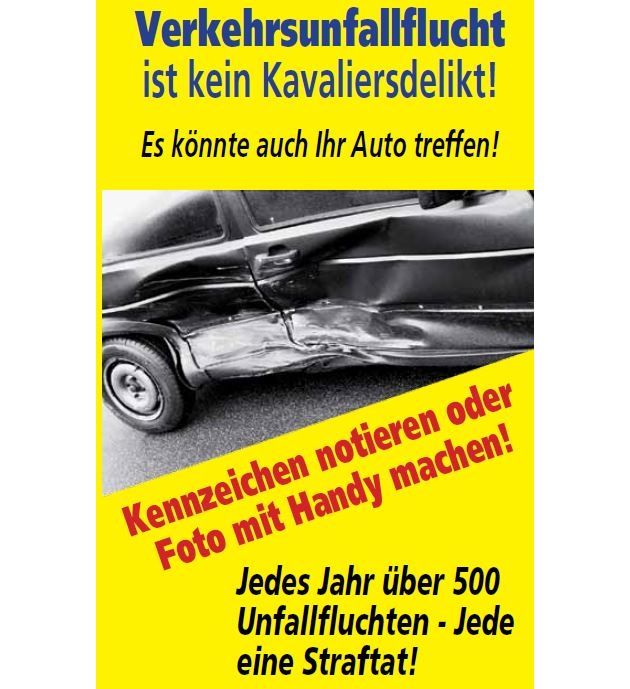 Am Montag, dem 21.03.2016, gegen 16.30 h, wurden in der Marktstraße mehrere umgebogene Pfosten festgestellt. Nach Spurenlage hat ein größerer LKW beim Abbiegen von der Marktstraße nach rechts in die Hauptstraße mit seinem Heck die Pfosten um gedrückt und sich von der Unfallstelle entfernt. An der Örtlichkeit wurde ein amtliches Kennzeichen aufgefunden, das in Zusammenhang mit der Verkehrsunfallflucht stehen könnte. Die Ermittlungen hierzu dauern an, es entstand ein Sachschaden in Höhe von etwa 1 500,- Euro.