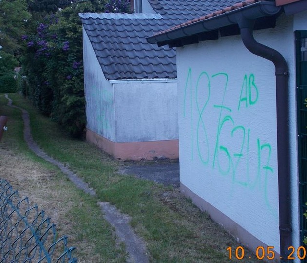 *, den 08.05.2016, 12.00 Uhr bis 10.05.2016, 08.00 Uhr* Unbekannte Täter beschädigten die rückwärtigen Hauswände von zwei Einfamilienhäusern in der Graf- Stauffenberg- Straße, der Schaden wird auf 100 Euro geschätzt.