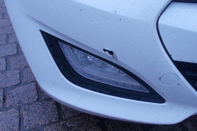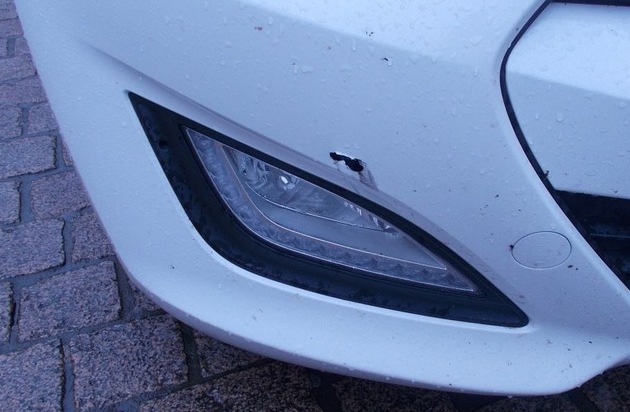 *, den 10.05.2016, 09.00 bis 09.05 Uhr* Nach nur fünf Minuten Abwesenheit von ihrem, auf dem Parkplatz Löffelgasse abgestellten weißen Hyundai i30, musste eine 28- jährige PKW- Fahrerin einen Schaden an der vorderen Stoßstange feststellen. Im Kunststoff steckte ein ca. 6 cm langes und 1,5 cm breites vermutlich Auswuchtgewicht. Hinweise auf den Verursacher gibt es nicht, der Schaden beträgt ca. 600 Euro.