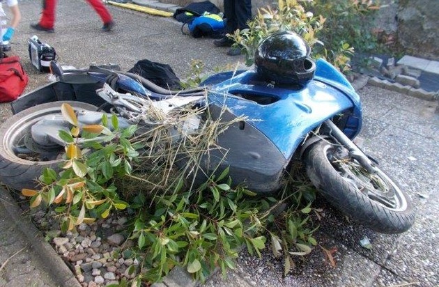 Ein 55-jähriger Motorradfahrer verlor am gestrigen Abend, gegen 19:05 Uhr, in einer langgezogenen Linkskurve der L453 in Fahrtrichtung Heuchelheim, vermutlich aufgrund von überhöhter Geschwindigkeit, derart die Kontrolle über sein Zweirad, dass seine Fahrt erst nach ca. 400 Metern unkontrollierter Irrfahrt über einen Radweg, zwei Ackerflächen und nachdem er einen Maschendrahtzaun durchbrochen hatte, endete. Der Motorradfahrer zog sich dabei schwere Verletzungen in Form eines Polytraumas zu und musste durch einen Rettungshubschrauber in der Unfallklinik geflogen werden. Glück im Unglück hatte der Fahrer dennoch, denn das Motorrad kam nur wenige Meter neben einem Baum zum Stillstand. Der Sachschaden beläuft sich auf circa. 6000 EUR. Gerade in der Motorradsaison ruft die Polizei Frankenthal zu vorsichtigem und rücksichtsvollem Fahren auf. Passen sie ihre Geschwindigkeit dem eigenen Fahrkönnen und dem jeweiligen Straßenverlauf an. Sicher Ankommen sollte die oberste Devise während der Motorradsaison sein.