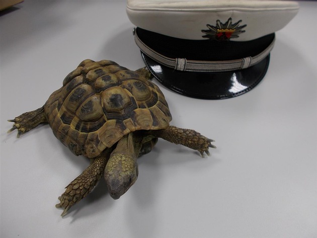 Anwohner der Bahnhofstraße in Lambsheim finden am Nachmittag des 27.07.2017 eine Landschildkröte auf den nahegelegenen Bahngleisen. Sie wird durch die eingesetzten Polizeibeamten abgeholt und in artgerechte Verwahrung gegeben, bis der rechtmäßige Eigentümer ermittelt werden kann.