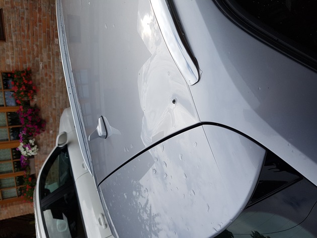Am Freitagmorgen, gegen 05.30 Uhr, wurde die 20-jährige Geschädigte durch laute Schlaggeräusche in der Schwegenheimer Straße wach. Als sie ans Fenster ging konnte sie noch sehen wie eine männliche mittelgroße Person mit einem Roller davon fuhr. Erst später stellte sie an ihren beiden PKW massive Beschädigungen fest. Vor Ort konnte die Streife an den Fahrzeugen diverse tiefe Kratzer, sowie kleine Löcher an sämtlichen Karosserieteilen feststellen. Dem Spurenbild zufolge müsste der unbekannte Täter einen sogenannten Zimmermannshammer benutzt haben.