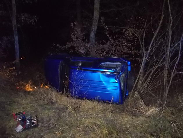 POL-PDLU: (Böhl-Iggelheim) Auto kommt wegen Glätte von Fahrbahn ab und überschlägt sich