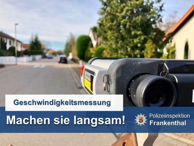 In der Nacht vom 20.01.2018 auf den 21.01.2018 wurde durch die Polizeiinspektion Frankenthal eine Geschwindigkeitskontrolle in der Lambsheimer Straße in Frankenthal durchgeführt. Eine Überprüfung von 23 Fahrzeugen ergibt, dass jedes vierte Fahrzeug zu schnell unterwegs ist. Der schnellste Fahrzeugführer wird bei einer erlaubten Geschwindigkeit von 50 km/h mit 86 km/h gemessen. Ihn erwarten ein Bußgeldverfahren, Punkte und ein Fahrverbot.
