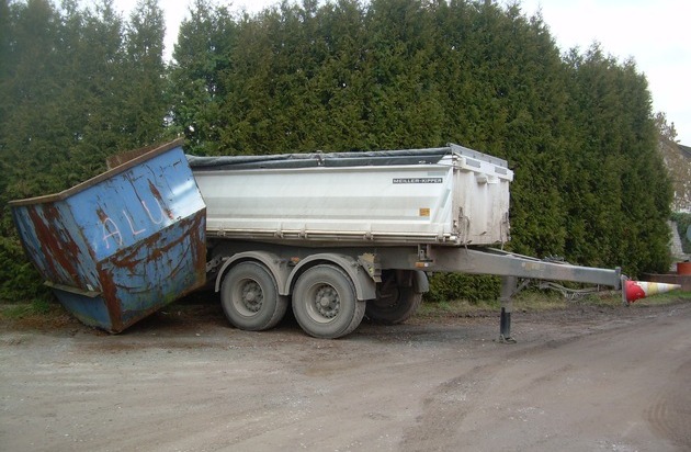 Ein bislang unbekannter Unfallverursacher wendete auf dem Gelände eines Containerdienstes in der Alten Rheinhäuser Straße in Speyer, als er mit einem hier abgestellten Lastenauflieger kollidierte. Dieser wiederum wurde hierdurch gegen einen daneben befindlichen Container geschoben. An Container und Auflieger entstand ein Sachschaden in Höhe von mindestens 800 Euro. Auch am Fahrzeug des Unfallverursachers dürfte infolge des Zusammenstoßes ein deutlicher Schaden entstanden sein. Aufgrund des Schadensbildes könnte es sich hierbei um einen LKW handeln.