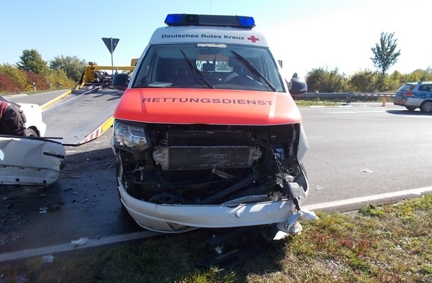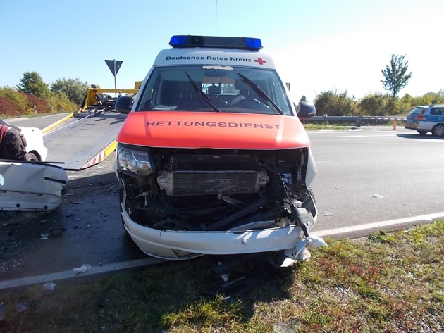 Ein 74-jähriger Fahrer eines DB, stand am 02.10.15, gegen 10:45 Uhr, an der Anschlussstelle der B 271 Wachenheim / Friedelsheim und wollte nach links auf die B 271 in Fahrtrichtung Neustadt einbiegen. Hierbei übersah er einen aus Neustadt kommenden Rettungswagen, der von einer 38-jährigen Rettungssanitäterin gelenkt wurde. Diese hatte noch versucht auszuweichen, was ihr aber nicht gelang. Beide Fahrzeuge wurden durch den Zusammenstoß stark beschädigt und waren nicht mehr fahrbereit. Sie wurden abgeschleppt. Der entstandene Schaden beläuft sich auf ca. 40.000,- Euro. Der Unfallverursacher war im Fahrzeug eingeklemmt und musste durch die FW Bad Dürkheim aus dem Fahrzeug befreit werden. Er erlitt schwere, aber offensichtlich nicht lebensgefährliche Verletzungen. Er wurde mit dem Rettungshubschrauber in ein KH eingeliefert. Seine Beifahrerin blieb unverletzt. Die 38-Jährige Frau und ihr 22-jähriger Kollege erlitten Verletzungen an ihren Handgelenken. Sie wurden beide in ein KH eingeliefert. Ein Patient befand sich nicht im Rettungswagen. Die B 271 war während der Unfallaufnahme und den Aufräumungsarbeiten voll gesperrt. Die Sperrung wurde gegen 11:50 Uhr wieder aufgehoben. Während der Sperrung kam es zu Verkehrsbeeinträchtigungen im Stadtgebiet von Wachenheim.