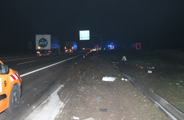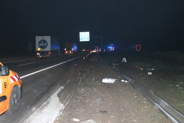 Auf der Autobahn 61 kam es am Montag, 19.10.2015, in Richtung Speyer zu erheblichen Beeinträchtigungen im Berufsverkehr. Wegen Bergungsarbeiten war die Autobahn in Höhe des Parkplatzes Bobelach, Gemarkung Ruchheim, mehrere Stunden nur einstreifig befahrbar. Es kam zu einem Rückstau bis zu 10 km Länge. Die Ursache hierfür setzte der Fahrer eines niederländischen Sattelzuges, der gegen 05:20 Uhr nach rechts von der Fahrbahn abkam und auf ca. 100 Meter Länge die Schutzplanken überfuhr. Dabei wurden auch Verkehrszeichen und eine Notrufsäule beschädigt. An der Zugmaschine entstand erheblicher Sachschaden, zudem wurde der Tank aufgerissen. Es liefen mehrere hundert Liter Dieselkraftstoff aus. Der 24-jährige Fahrer gab als Unfallursache zwar einen Reifenschaden an. Dieser kann jedoch auch erst beim Überfahren der Schutzplanken entstanden sein. Bei der Überprüfung der Lenk- und Ruhezeiten ergaben sich Hinweise auf die Fälschung beweiserheblicher Daten, weshalb ein Strafverfahren eingeleitet wird. Die Ermittlungen dauern an. Der Gesamtschaden beläuft sich auf ca. 160.000,- EUR. Neben der Polizei waren die Autobahnmeisterei Ruchheim, die Feuerwehr und die Untere Wasserbehörde im Einsatz.