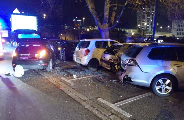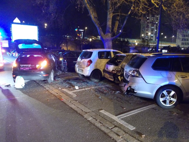 Am Mittwochabend (01.02.17) rammte ein Mannheimer mit seinem Auto mehrere geparkte Fahrzeuge im Bereich der Rheinuferstraße. Gegen 21 Uhr fuhr der 31-Jährige mit seinem Pkw auf der B37 von Mannheim kommend in Richtung Lagerhausstraße. Unmittelbar vor der Konrad-Adenauer-Brücke auf Höhe der Henry-Roos-Passage kam er rechts von der Fahrbahn ab und kollidierte mit insgesamt sieben geparkten Autos. Da die Polizei vor Ort Hinweise erlangte, dass der Mannheimer unter Medikamenteneinfluss stand, wurde ihm Blutprobe entnommen. Der Unfallverursacher wurde mit leichten Verletzungen in ein Krankenhaus eingeliefert. Endergebnis: 40 000 Euro Sachschaden und eine Anzeige wegen Gefährdung des Straßenverkehrs.