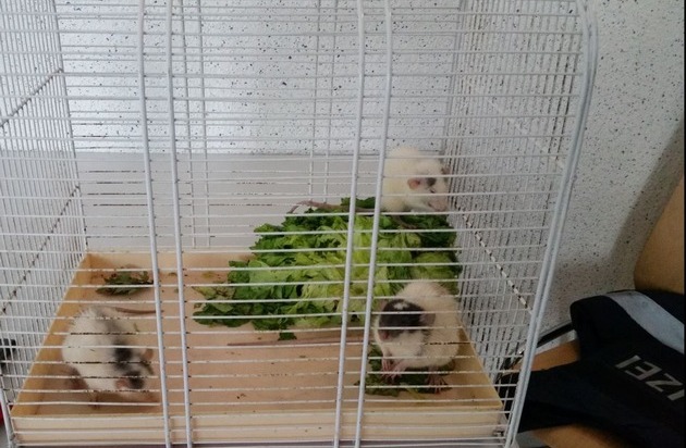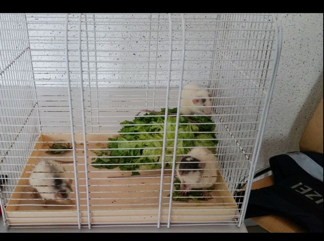 Am 9.6.17 (9.15 Uhr) erscheint eine besorgte 51-jährige Bürgerin bei der Polizeiwache Oggersheim und gibt einen Käfig ab. Im Gepäck hatte sie drei Farbratten. Marlon, Siggi und Anton wurden scheinbar im Bereich des Großpartweihers in Ludwigshafen ausgesetzt. Die tierliebe Bürgerin hatte den offenstehenden Käfig entdeckt und zwei der drei Ratten, welche den Weg ins Freie bereits gefunden hatten, eingefangen. Während die städtische Feuerwehr informiert wurde, damit die Farbratten in ein Tierheim verbracht und artgerecht versorgt werden können, knabberten diese genüsslich ihren Reiseproviant.