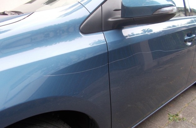 Unbekannte zerkratzten mit einem spitzen Gegenstand von Samstag (15.7.2017, 17.30 Uhr) auf Sonntag (16.7.2017, 10.30 Uhr) einen geparkten PKW. Der blaue Toyota war im Tatzeitraum in der Pommernstraße geparkt. Insgesamt entstand ein Sachschaden in Höhe von 1500 Euro.