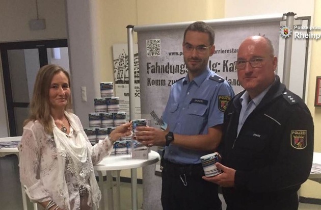 Zudem erhielten die engagierten Polizistinnen und Polizisten, ohne die eine solche Veranstaltung nicht möglich wäre, zum Start der landesweiten "Kaffeetassen-Aktion" die ersten Kaffeetassen im Polizeipräsidium Rheinpfalz. Die Kaffeetassen-Aktion ist eine Idee der "Zentralstelle für Werbung und Einstellung" an der Hochschule der Polizei. Ein Dank an alle Kolleginnen und Kollegen, die den neuen Gedanken der Nachwuchswerbung leben: "Polizisten werben Polizisten!" Hintergrund der Aktion ist unser steigender Bedarf an qualifizierten Bewerbern für den Polizeiberuf. Aktuell geht nach und nach die "Baby-Boom"-Generation in den Ruhestand. Das hat zur Folge, dass der Polizei Rheinland-Pfalz ein Generationswechsel bevorsteht. Aktuelle Umfragen haben ergeben, dass Polizeibeamtinnen und Polizeibeamte die besten Ansprechpartner und Botschafter für unseren attraktiven Beruf sind. Der Berufswunsch "Polizei" wird bei den meisten Bewerberinnen und Bewerber durch das enge soziale Umfeld, also Freunde, Bekannte und Familie geweckt. Bei anderen beispielsweise durch positive Erlebnisse mit der Polizei. Unsere Werbemaßnahmen für die zukünftige Kolleginnen und Kollegen sollen daher durch sogenannte Netzwerk-Rekrutierungen ausgeweitet werden.