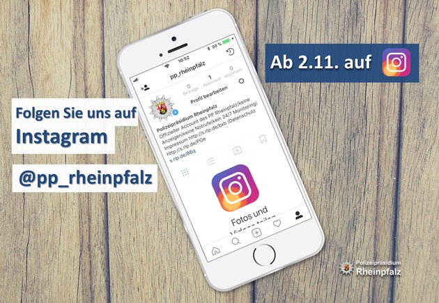 POL-PPRP: Polizeipräsidium Rheinpfalz nutzt zukünftig auch den Onlinedienst INSTAGRAM