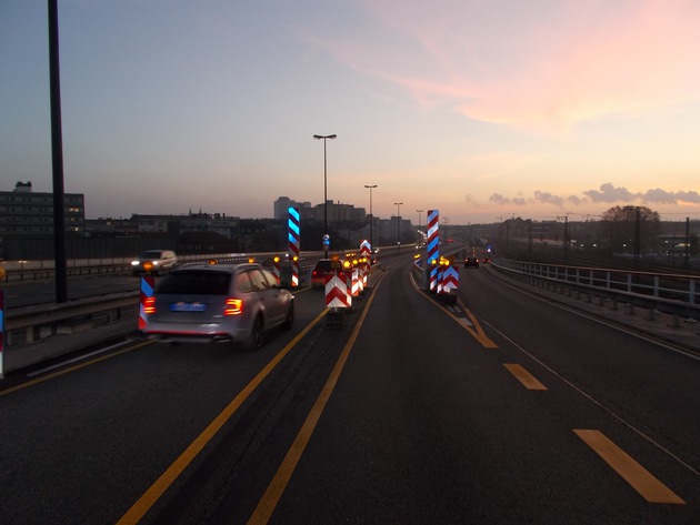 Am Mittwoch, den 06.12.2017, wurde im Zeitraum von 09:30 - 10:45 Uhr das Durchfahrtsverbot an der baulichen Engstelle auf der Hochstraße Süd in Fahrtrichtung Mannheim überwacht. Dieses gilt für Fahrzeuge, die breiter als 2,10m sind. Insgesamt verstießen neun Fahrzeugführer gegen das Verbot. Gegen weitere 15, die vor Ort nicht kontrolliert werden konnten, wurden entsprechende Ermittlungsverfahren eingeleitet. Diesen droht nun ein Bußgeld von 500EUR und 2 Monate Fahrverbot. Die Polizei wird ihre Kontrollen fortsetzen.