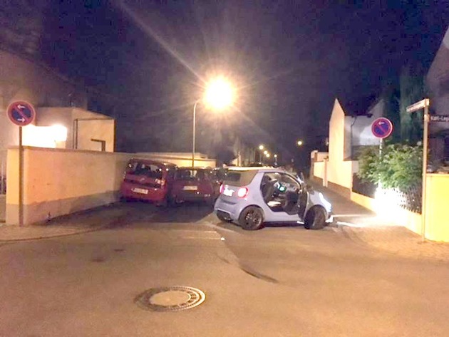 In den frühen Morgenstunden am Sonntag kam es gegen 01:20 Uhr zu einem spektakulären Unfall zwischen drei Pkw an der Kreuzung Franz-von-Sickingen-Straße und Karl-Legien-Straße. Ein 18jähriger Fahrer eines Fiat war in den Kreuzungsbereich eingefahren ohne die Regel Rechts-vor-Links zu beachten und kollidierte mit dem vorfahrtsberechtigten Smart eines 40jährigen Mannes.